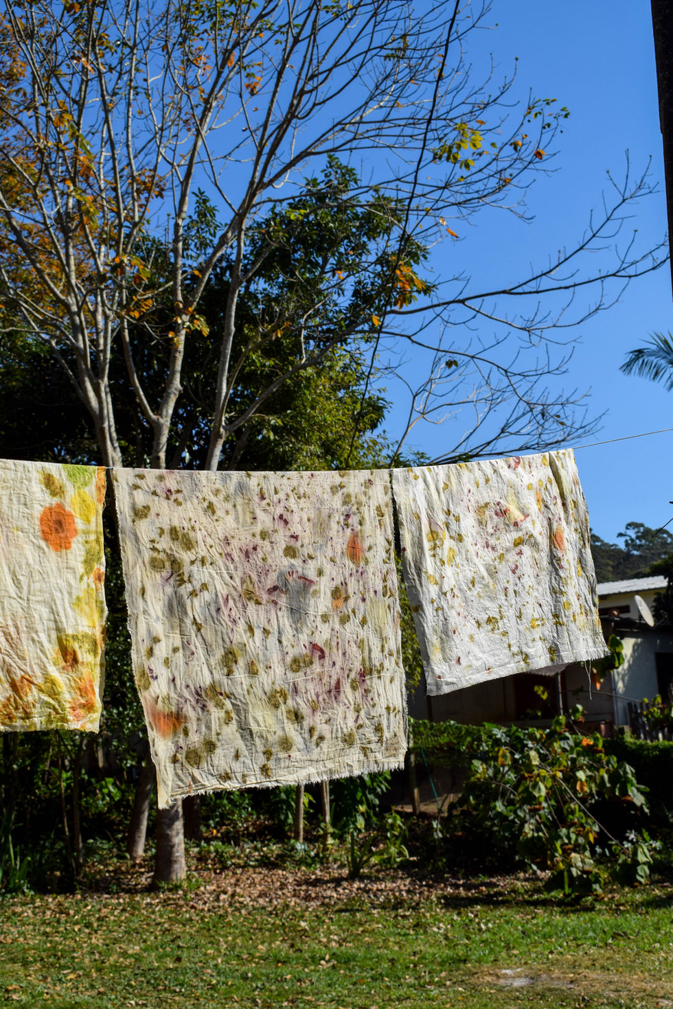 Os participantes puderam vivenciar o processo completo: da coleta de folhas e flores na natureza até as técnicas de preparo e tingimento de tecidos. Mais do que um curso, foi um espaço de conexão, troca de saberes e redescoberta do tempo lento do fazer manual.